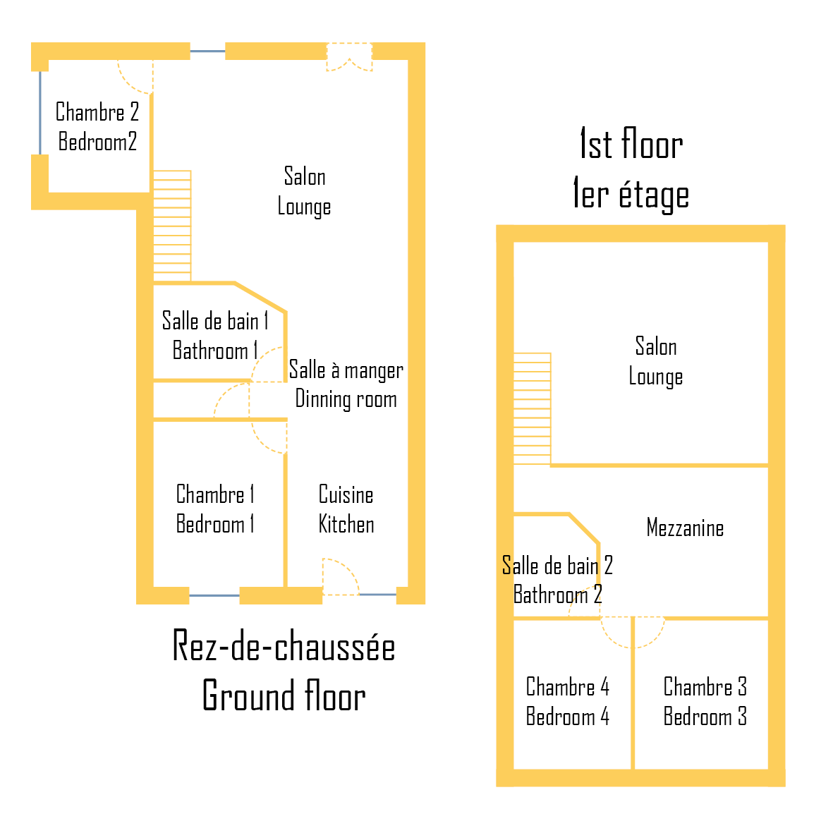 Quatre chambres ( 8 personnes) ; deux salles de douche
